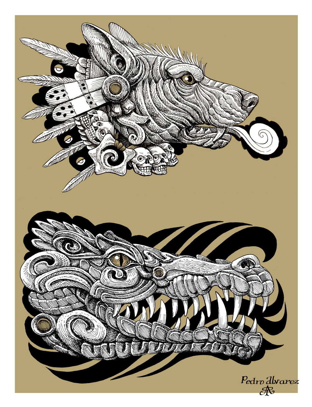 A collection of Ancient Gods and warriors in Pen and Ink.