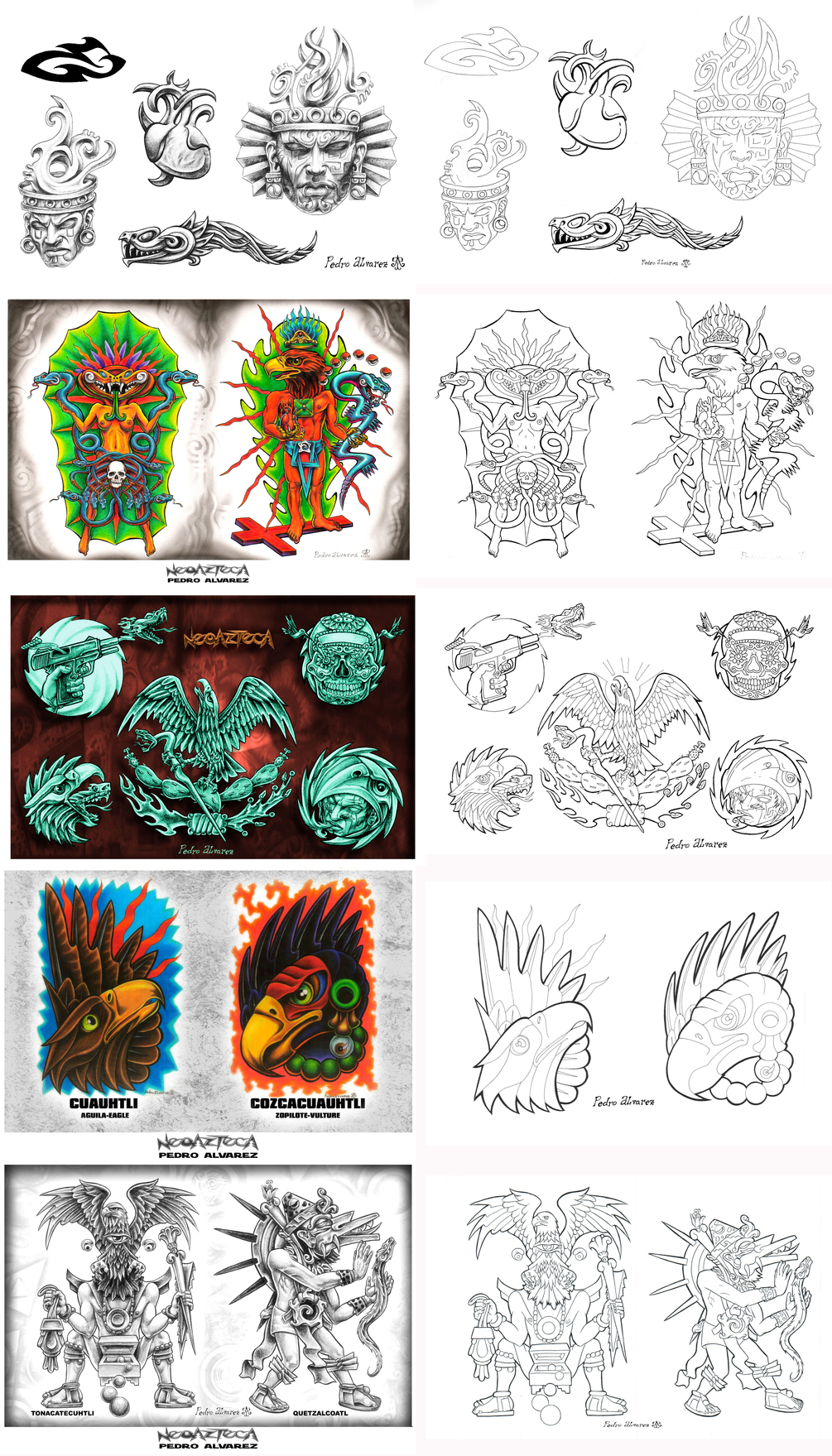 Get the complete Neoazteca Tattoo Flash 1997-2005 and the Sketchbook'21 together at a special price for a limited time. 189 pages of gods and warriors from ancient culture of Mexico reinterpreted by tattoo artist Pedro Alvarez.